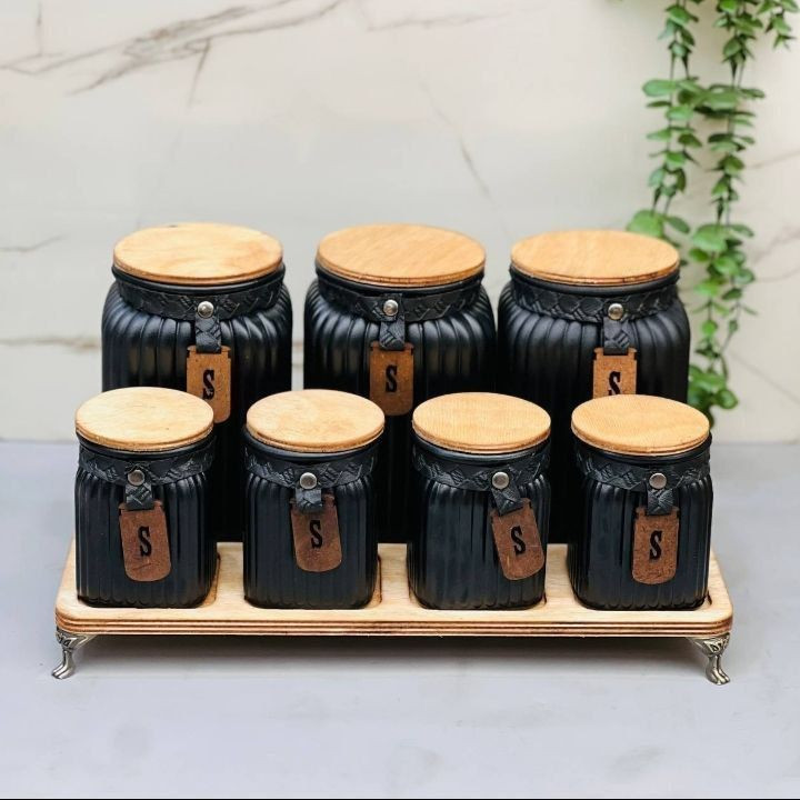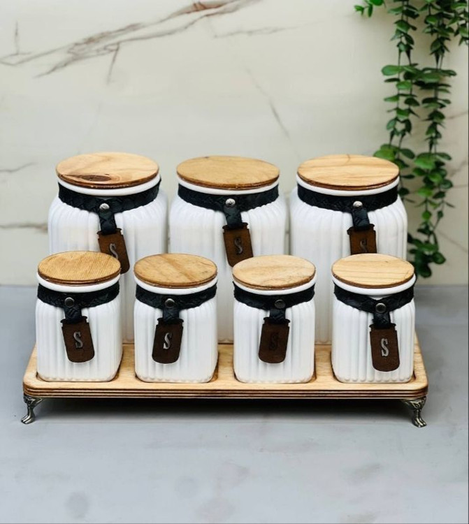 ست پاسماوری و جا ادویه ۷ پارچه طرح سرامیکی با درب چوبی